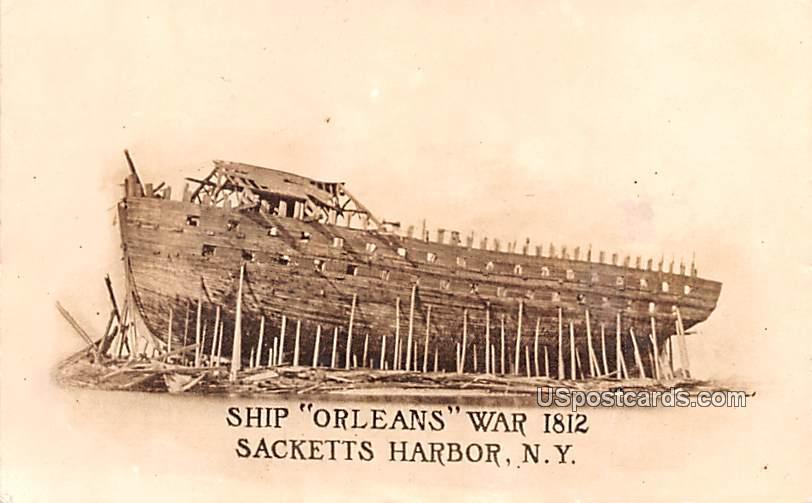 Ship Orleans War 1812 - Sacketts Harbor, New York Postcard - 1910 Grade: 2 Size: R - Regular size: Approx 3 1/2 X 5 1/2 inch (9 cm X 14 cm) Grading Scale: Grade 1 = Perfect corners Grade 2 = Very Minimal corne ... Read More