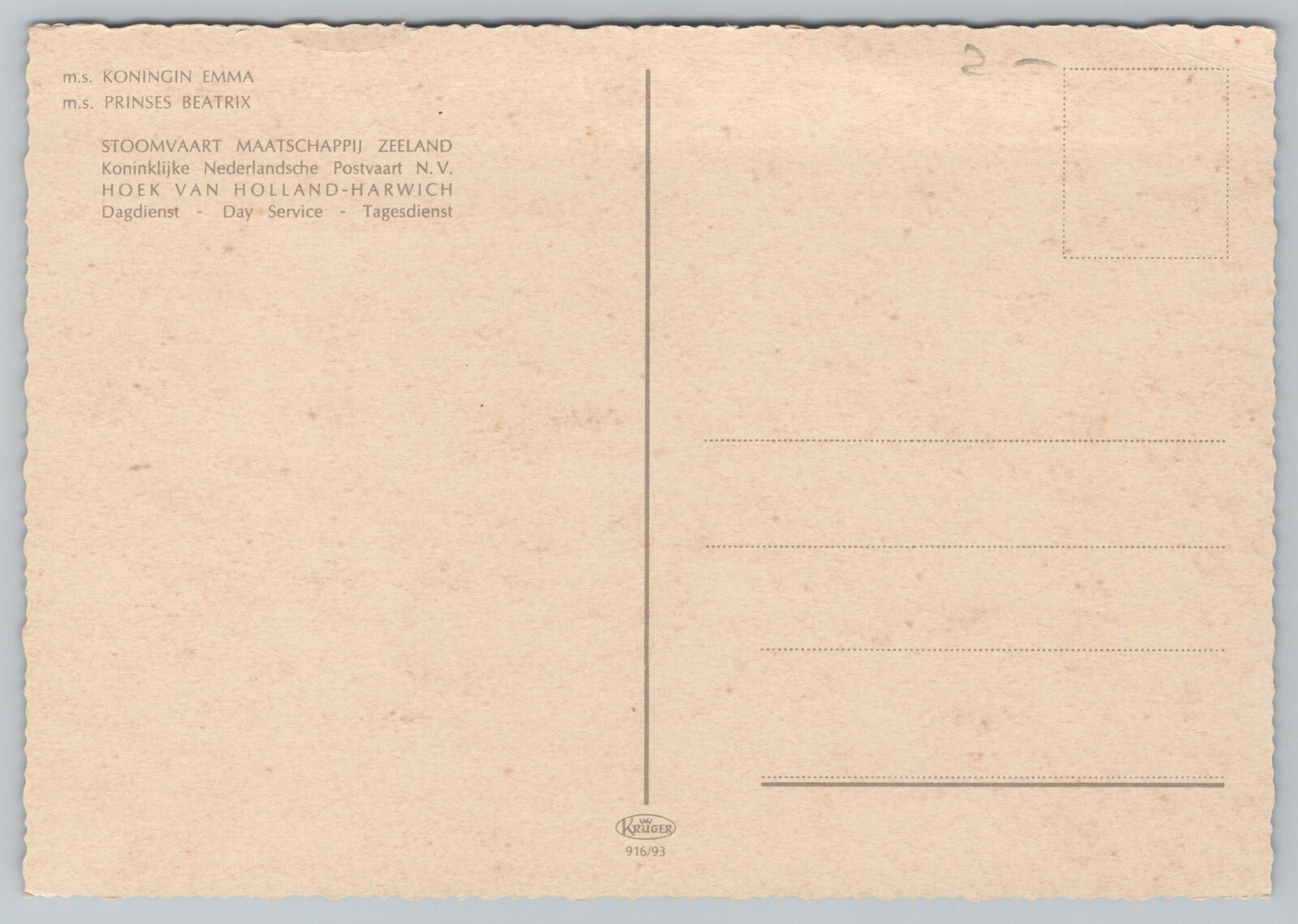 Ship~Queen Emma Princess Beatrix @ Zeeland~Continental Postcard