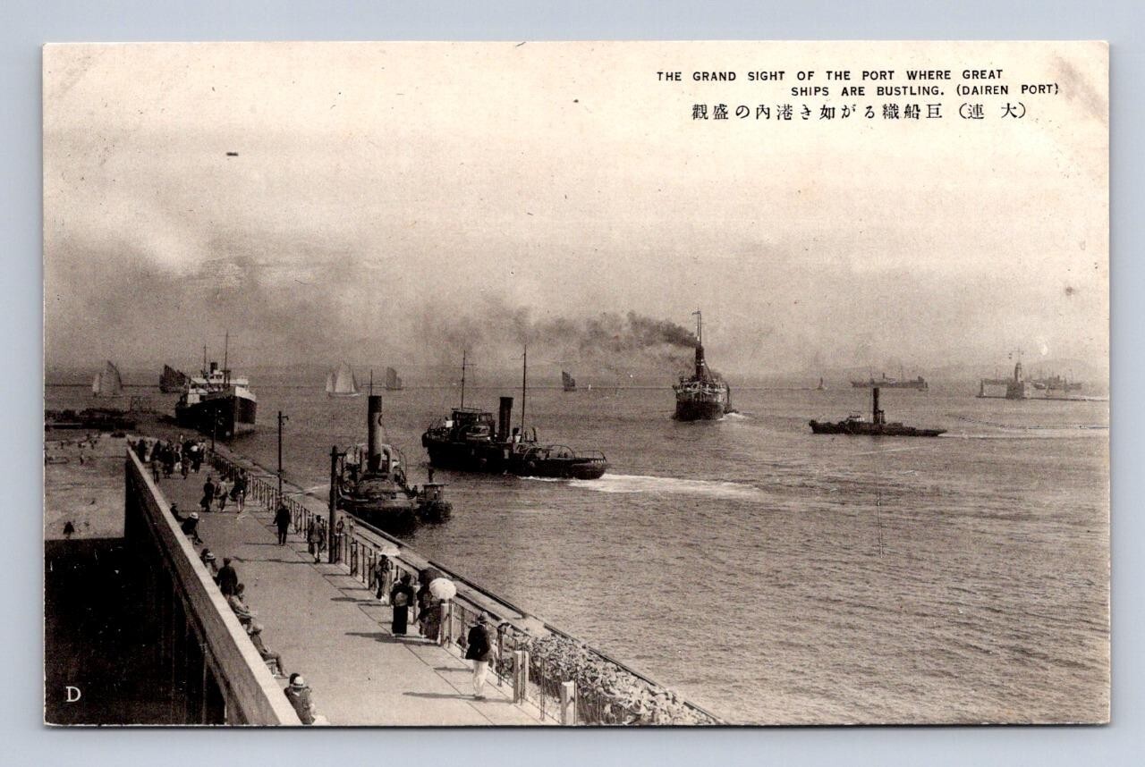 SHIPS AT DAIREN PORT CHINA POSTCARD (c.1910)