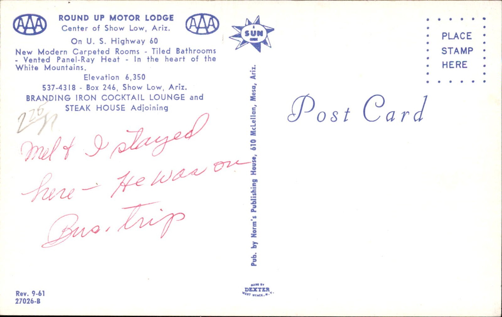 Show Low AZ Arizona Round Up Motor Lodge c1950-60s Vintage Postcard