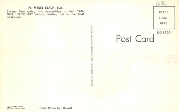 Shrimp Fleet Fort Myers Beach, Florida Postcard Fort Myers Beach FL Year date of postcard, or postal used / year used: unused Grade: 1 Size: R Shrimp Fleet in Fort Myers Beach, Florida vintage postcard from o ... Read More