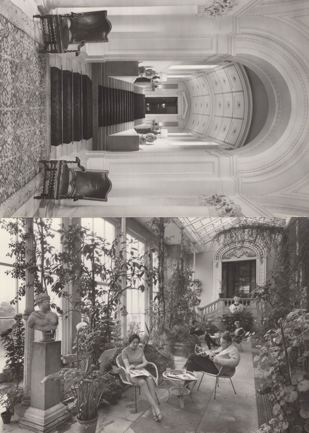 bg484 A rare pair of postcards of the Convervatory & Staircase at Shrubland Hall Suffolk from 35 years ago both unused and mint.