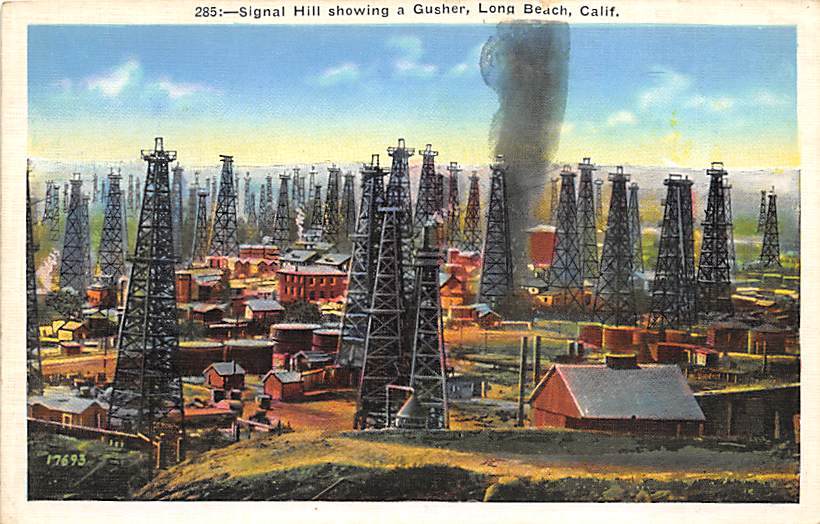 Signal Hill showing a Gusher Long Beach CA Postcard - Unused