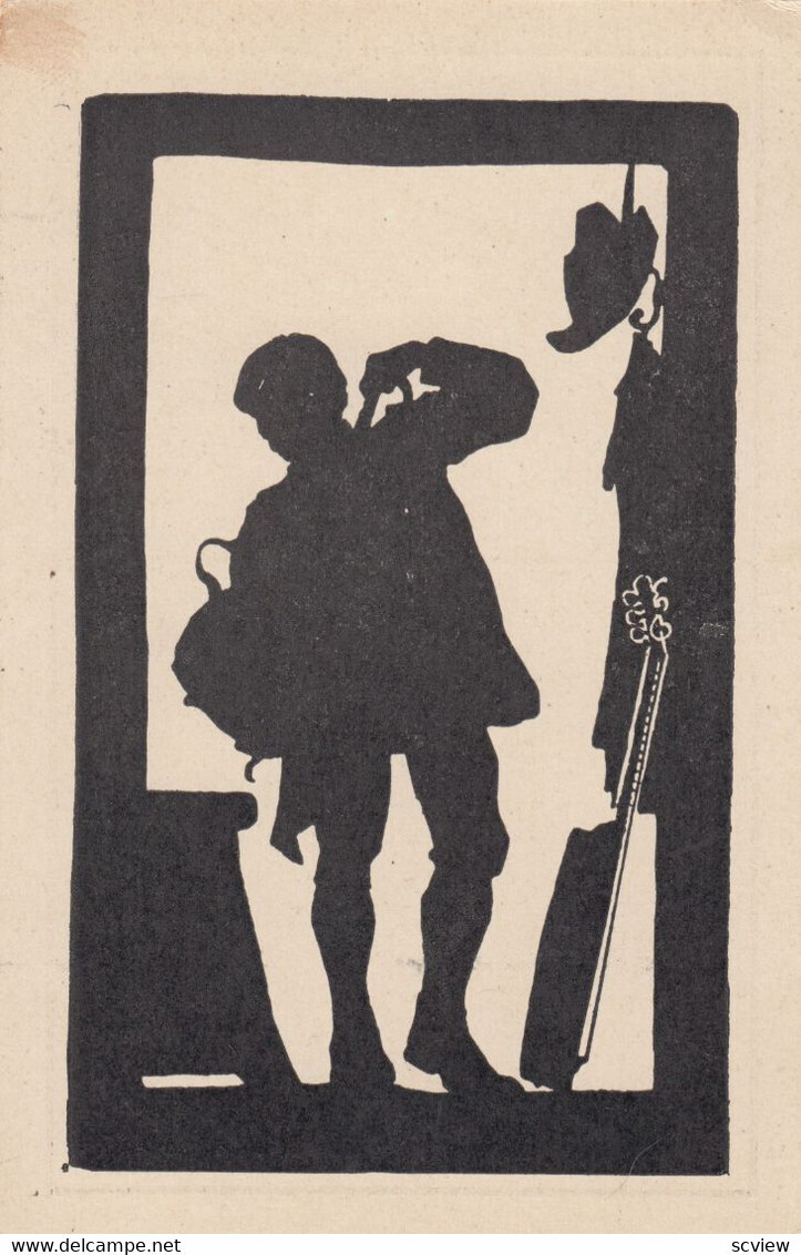 Silhouette ; Man undressing , 00-10s :: Postcard, 3.5" by 5.5", Litho