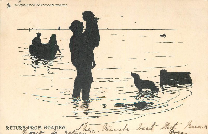 Silhouette postcard series - Return from boating c.1904 Raphael Tuck postcard