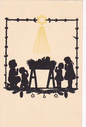 Silhouette Postcard Star Shining On Children and Manger