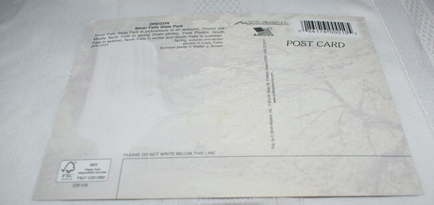 Condition: Pre-owned. Unposted postcard. As shown. See photos. Silver Falls State Park Oregon Postcard Smith-Western Inc.Unposted.Combined shipping is available. See store for related items.