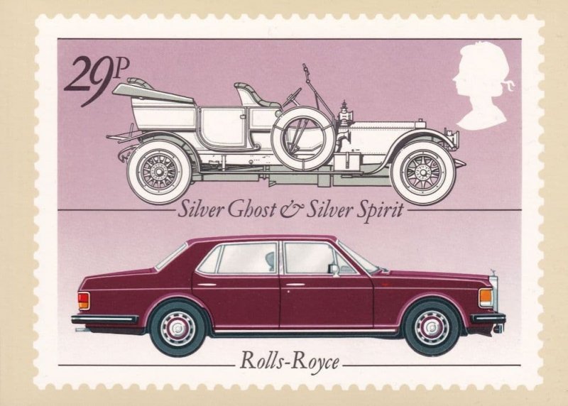 BG230 A rare PHQ official Royal Mail postcard of this Silver Ghost and Rolls Royce circa 1982 with design information etc on reverse making a specialist collectors souvenir from around 40 years ago unused and mint (same as new)