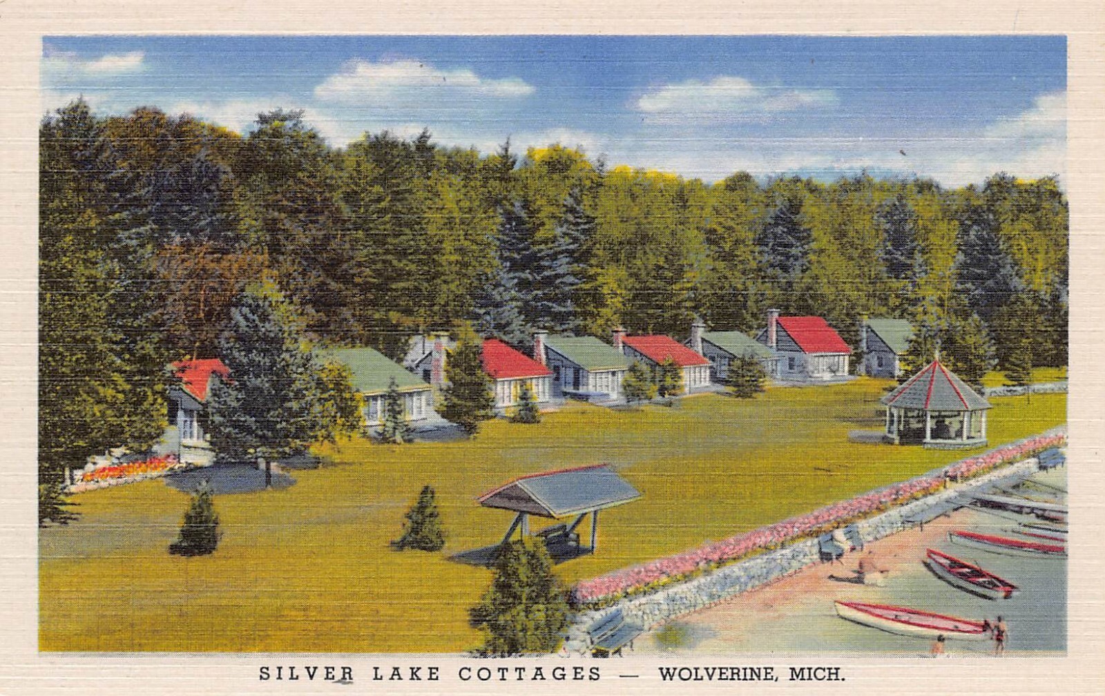 Silver Lake Cottages Wolverine Michigan linen postcard