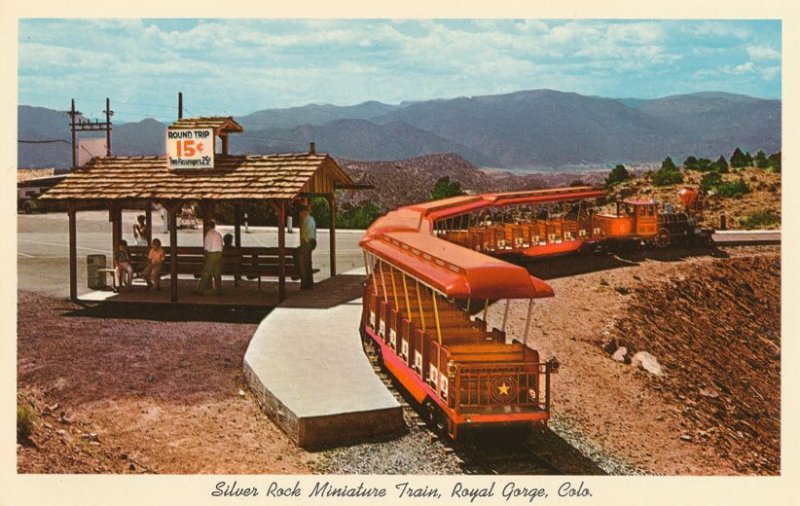 Silver Rock Miniature Train - Royal Gorge, Colorado.Standard sized chrome card.