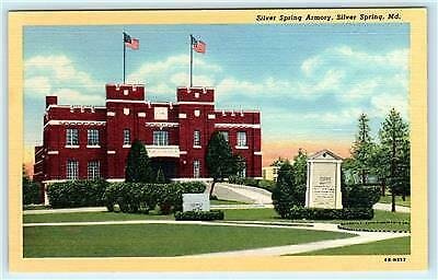SILVER SPRING, Maryland MD ~ SILVER SPRING ARMORY ca 1940s Linen Postcard