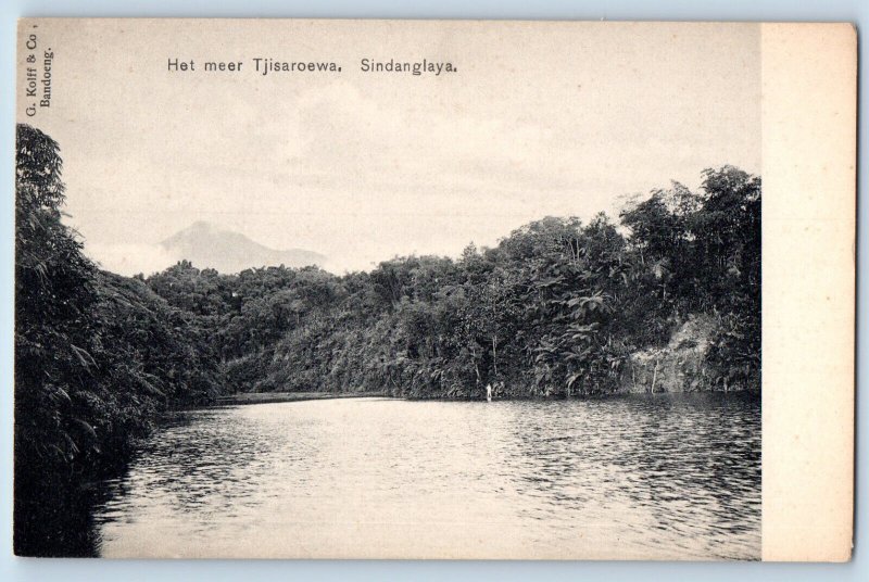 Sindanglaya West Java Indonesia Postcard Lake Tjisaroea c1910 Antique