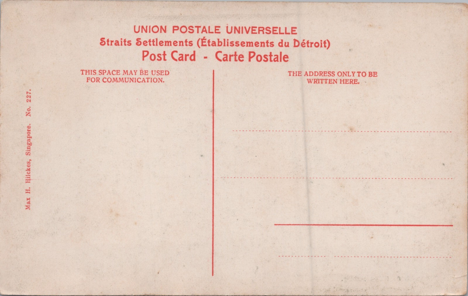 The product is a vintage postcard from Singapore depicting a bathing scene. It is an original printed lithograph measuring a standard size of 5.5 x 3.5 inches. The postcard features people and captures a moment in the history of Singapore's cities and towns. Made of paper, this collectible piece is a unique representation of the era pre-1914, showcasing the charm and culture of Singapore during that time.Look close at the pictures for the quality of the postcards and use the Hip zoom to examine the front and back. Lines are from the scanner and are not on the postcardIf you Buy More items please wait before you pay! I will sent you an invoice to combine shipping discount!!!1 postcard Shipping Worldwide $2.00 and after that 50 cents extra for each card. So for example: You buy 3 cards shipping will cost you $2.00 plus $1.00 is $3.00 dollars.
