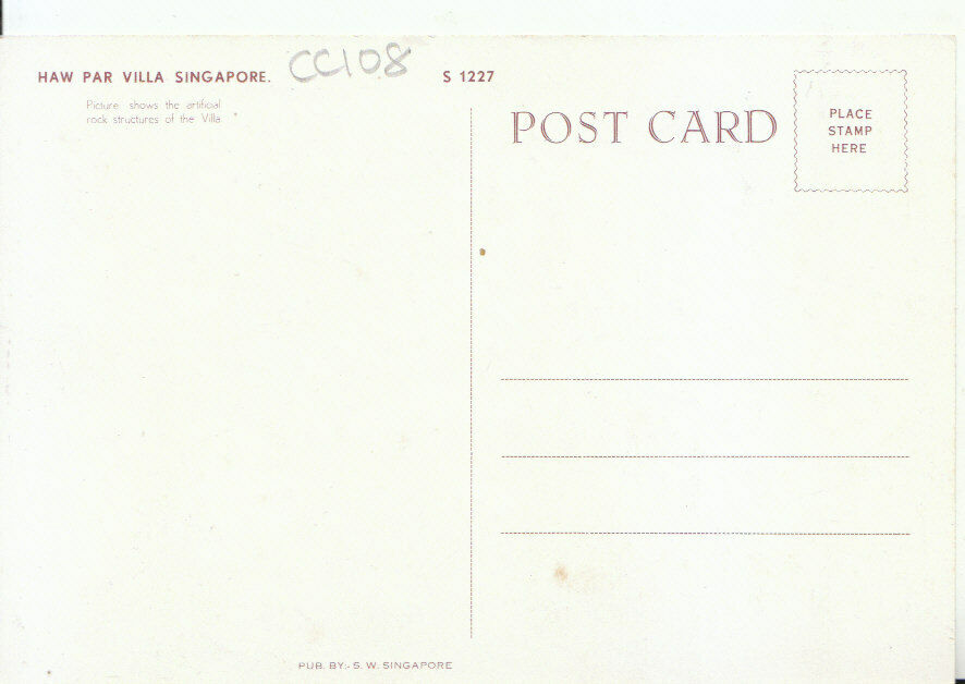 Postcard Description: Singapore Postcard - Haw Par Villa - Picture Shows The Artificial Rock Structure of The Villa
