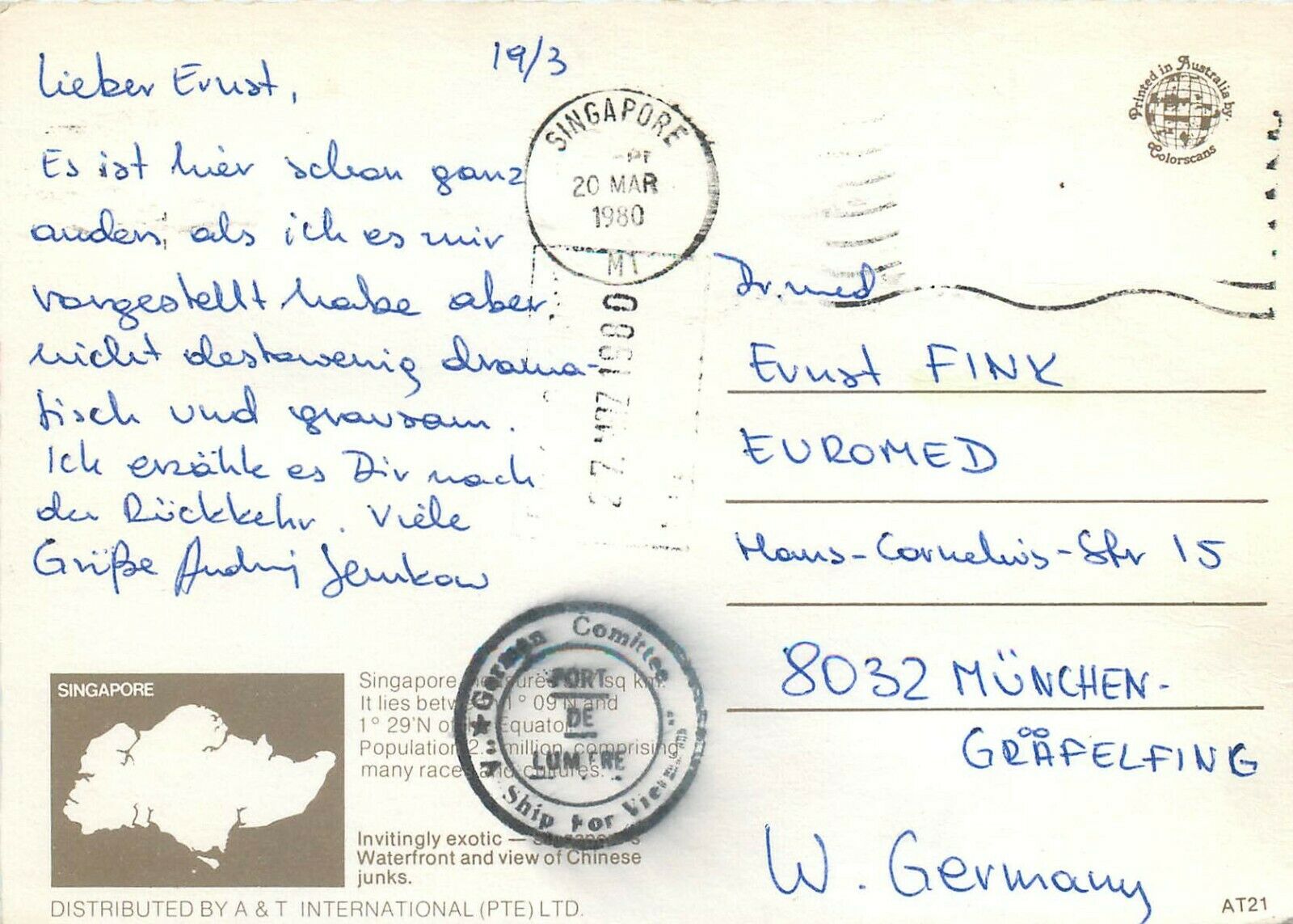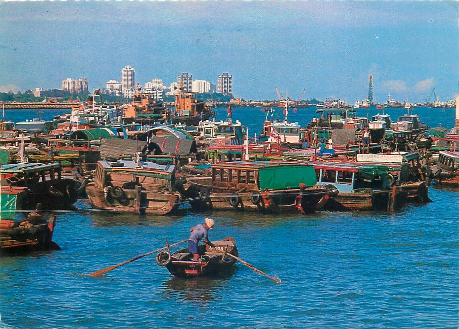 Singapore waterfront chinese junks postcard