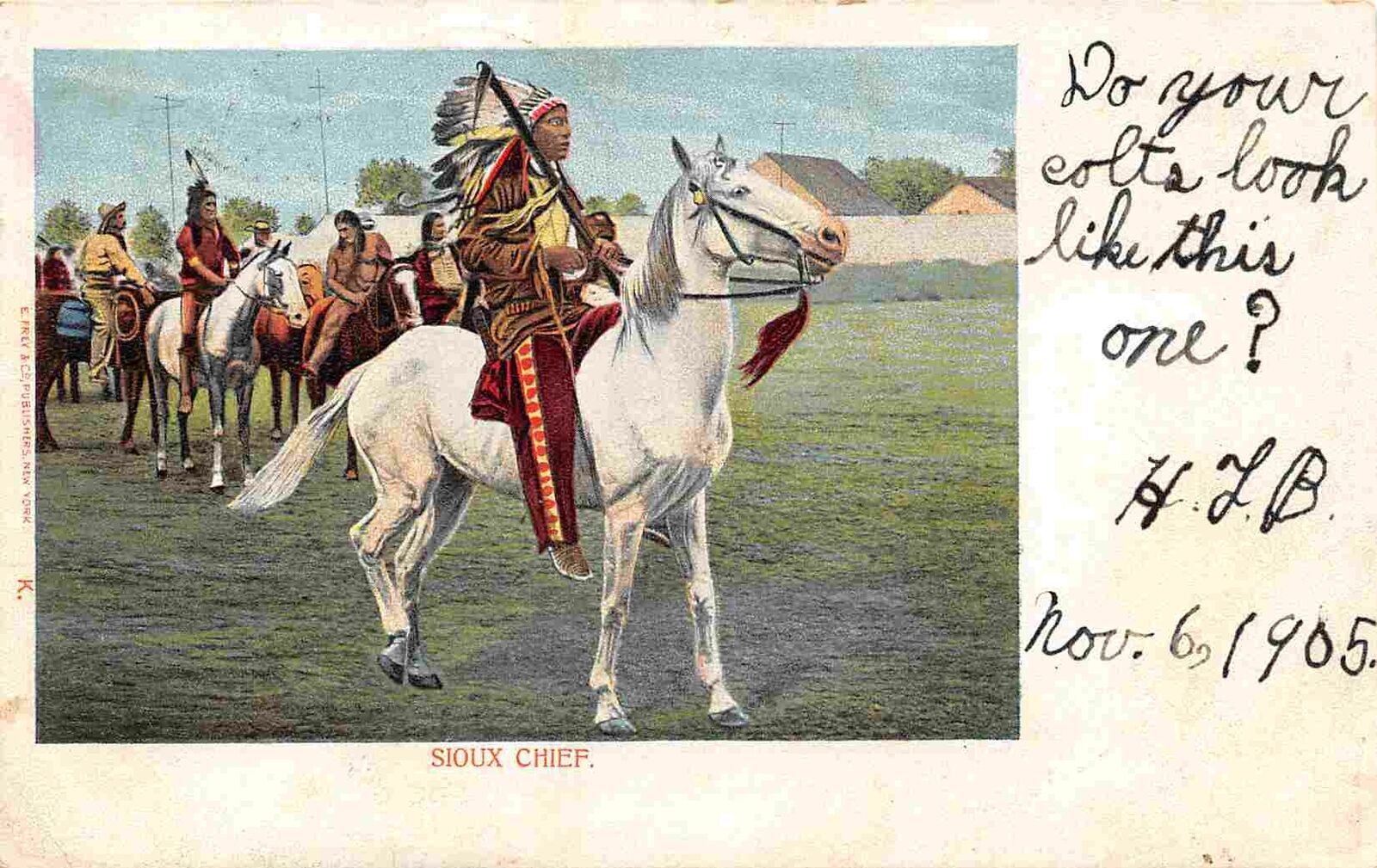 Sioux Chief Native American Indian on Horseback 1905 postcard