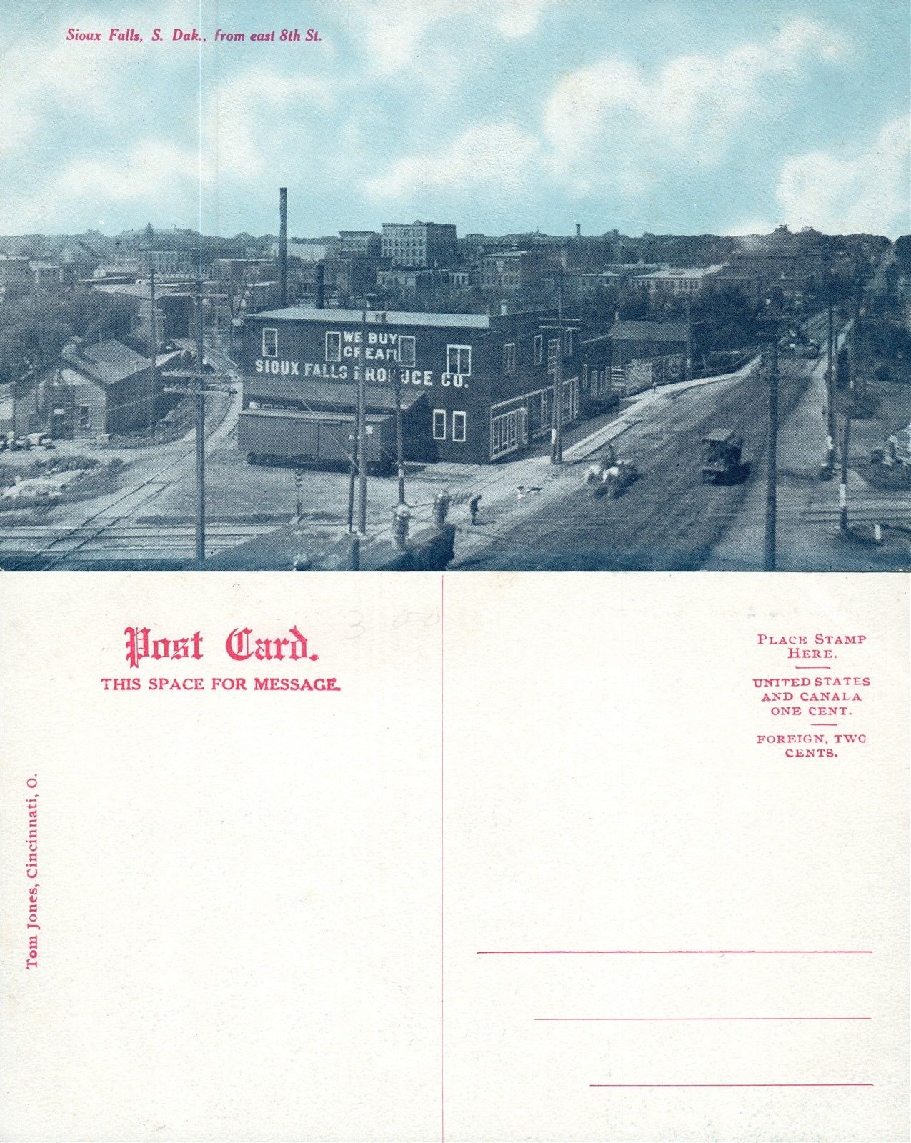 SIOUX FALLS S.D. FROM EAST 8th STREET ANTIQUE POSTCARD