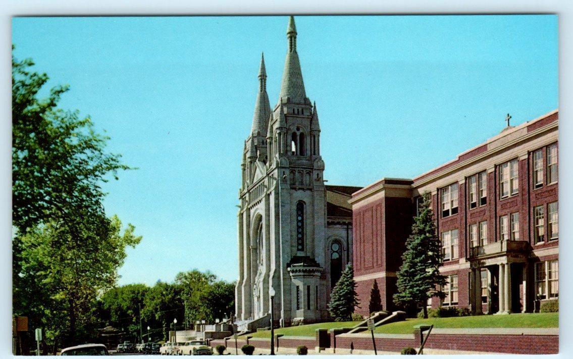SIOUX FALLS, SD ~ St. Joseph's Cathedral & CATHEDRAL HIGH SCHOOL 1960s Postcard