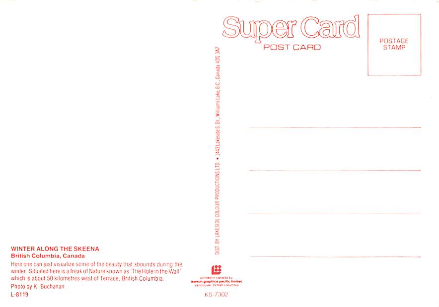 Skeena - Canada Grade: 1 Category: Continental Size Postcard, Approx 4 in x 6 in (10 cm x 15.25 cm) Product Size: Continental size: 4X6 inches (10.5 cm x 15 cm) Grading Scale: Grade 1 = Perfect corners Grade 2 ... Read More