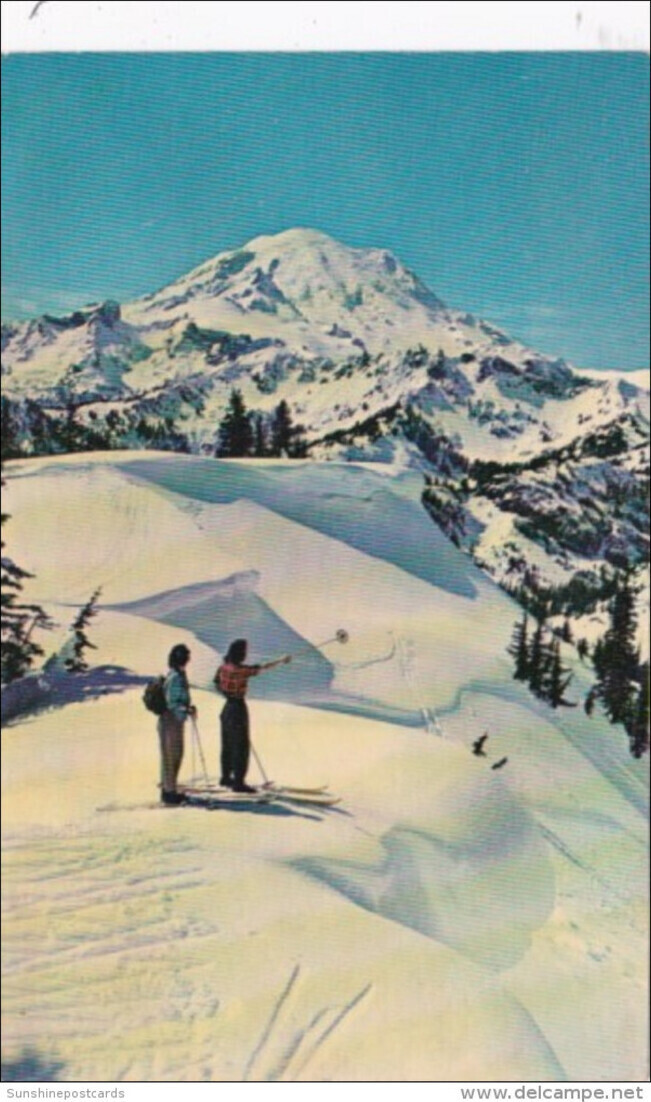 Skiers At Naches Pass Mount Rainier Washington