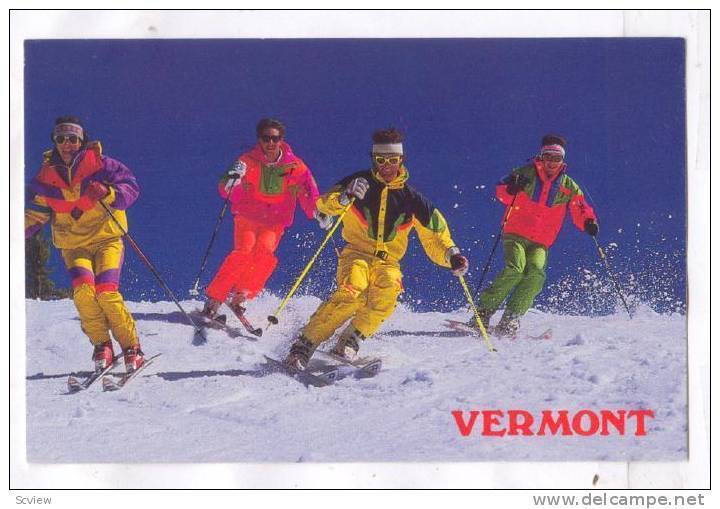 Skiing in Vermont, 40-60s :: Postcard, standard size, 3.5 by 5.5,Chrome, EX