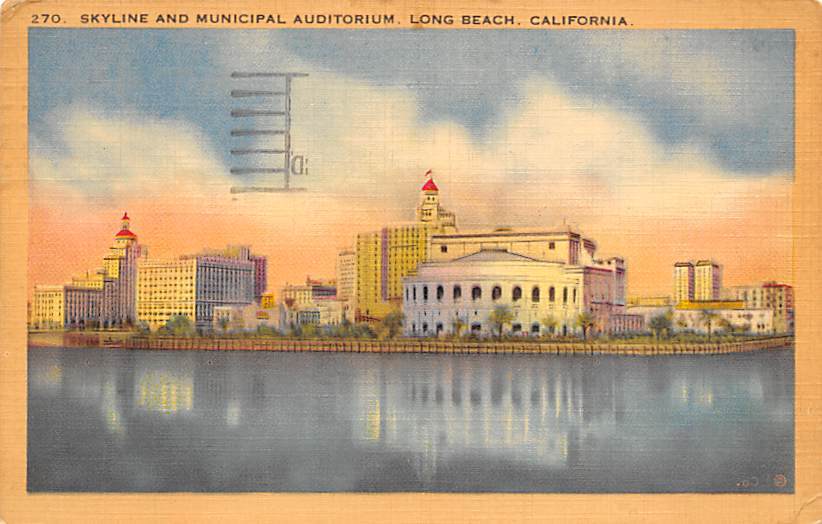 Skyline and Municipal Auditorium Long Beach CA Postcard - 1950