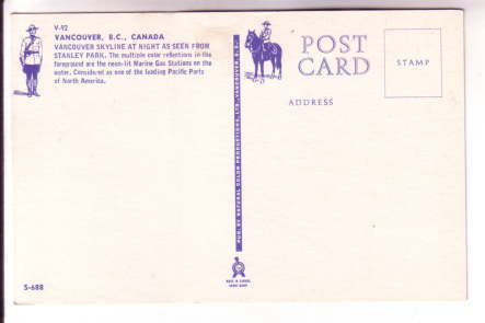 Skyline at Night, Vancouver British Columbia, RCMP on Back
