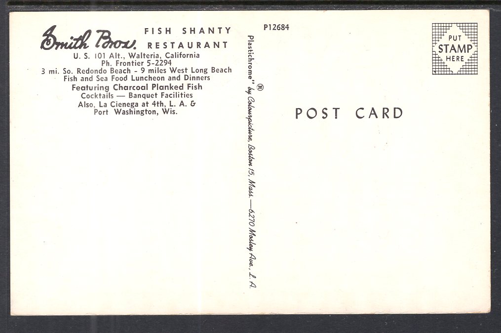 Smith Bros Fish Shanty Restaurant,Waltera,CA BIN