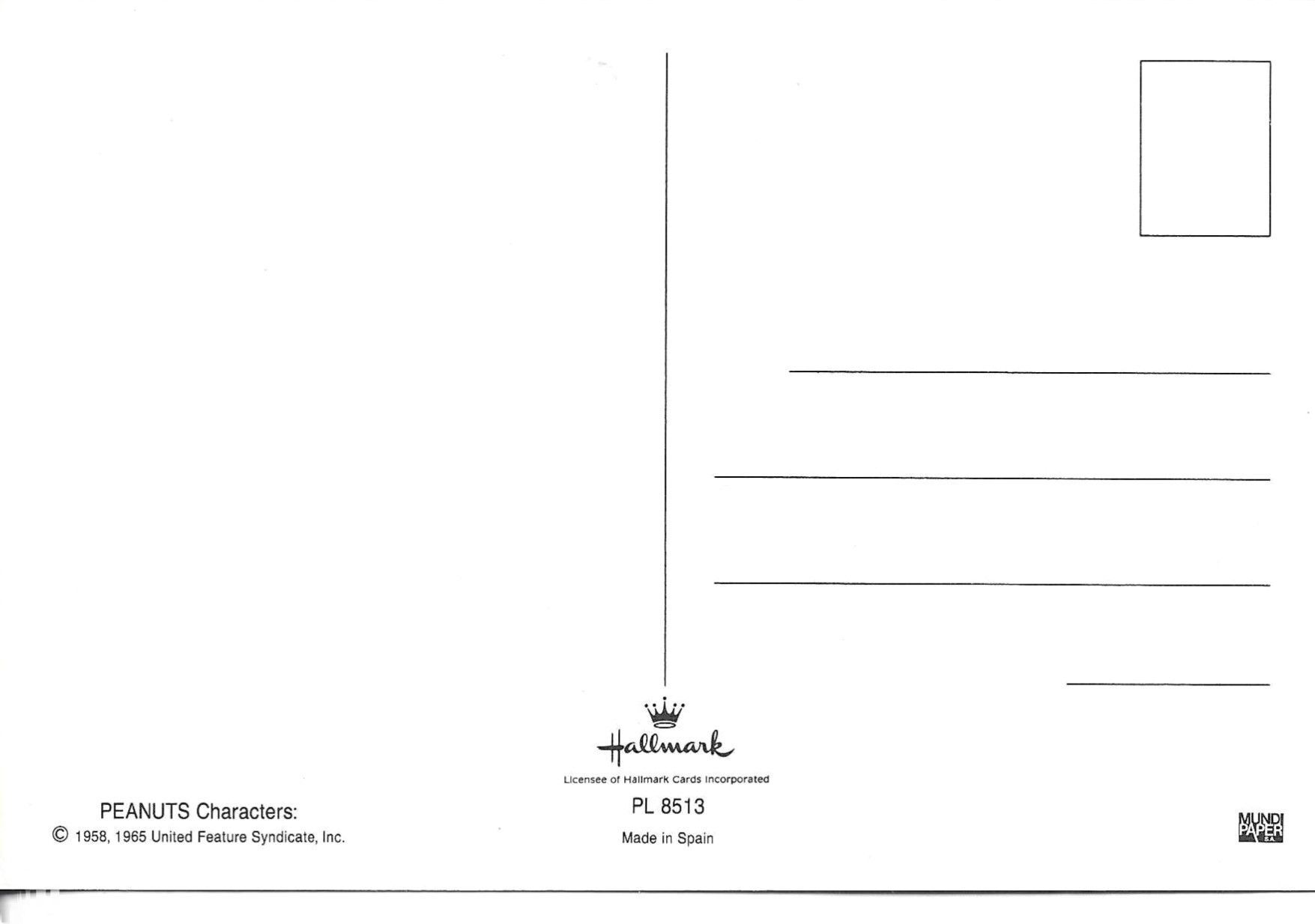 "snoopy. Peanuts character by schulz" moern american artist signed postcardpublisher: hallmrk . 1958 united feature sindicate inc.