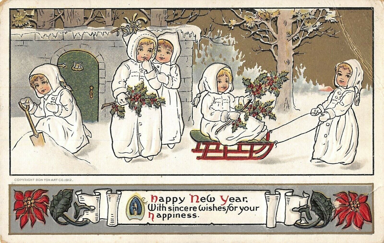 Snow babies sledding Bonton Art Postcard c1909 AI152