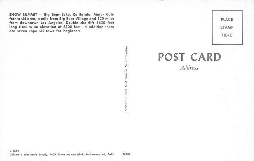 Snow Summit Big Bear Lake California Postcard