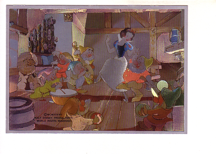 Snow White, Seven Dwarfs, Silver Foil Disney Cartoon Postcard, Dufex