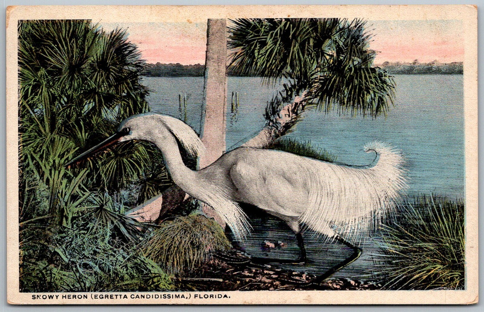 Snowy Heron Egretta Candidissima Florida 1920s Postcard