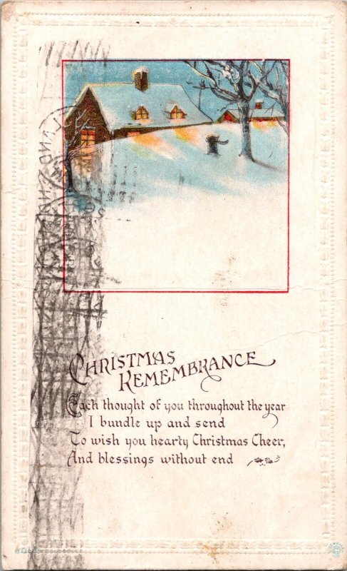 Snowy House Winter Scene Christmas Remembrance Postcard