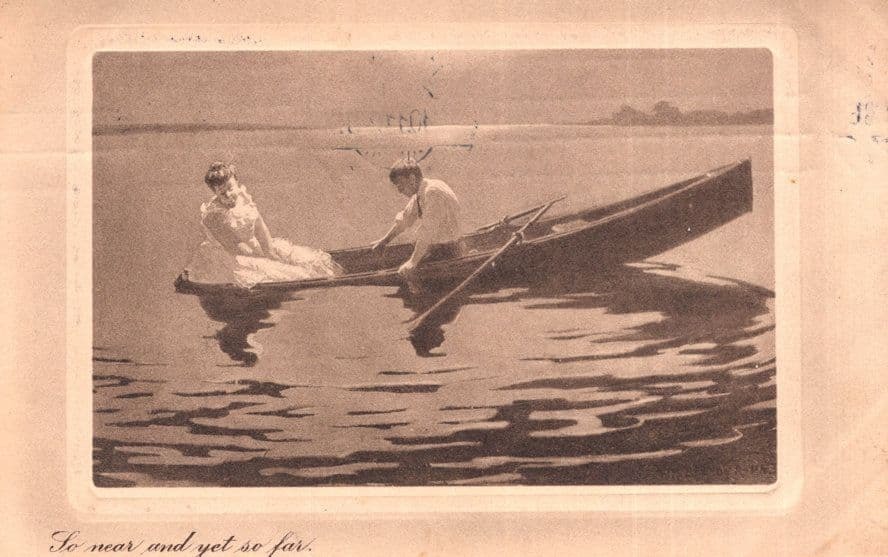 So Near But So Far Antique Rowing Boat Postcard