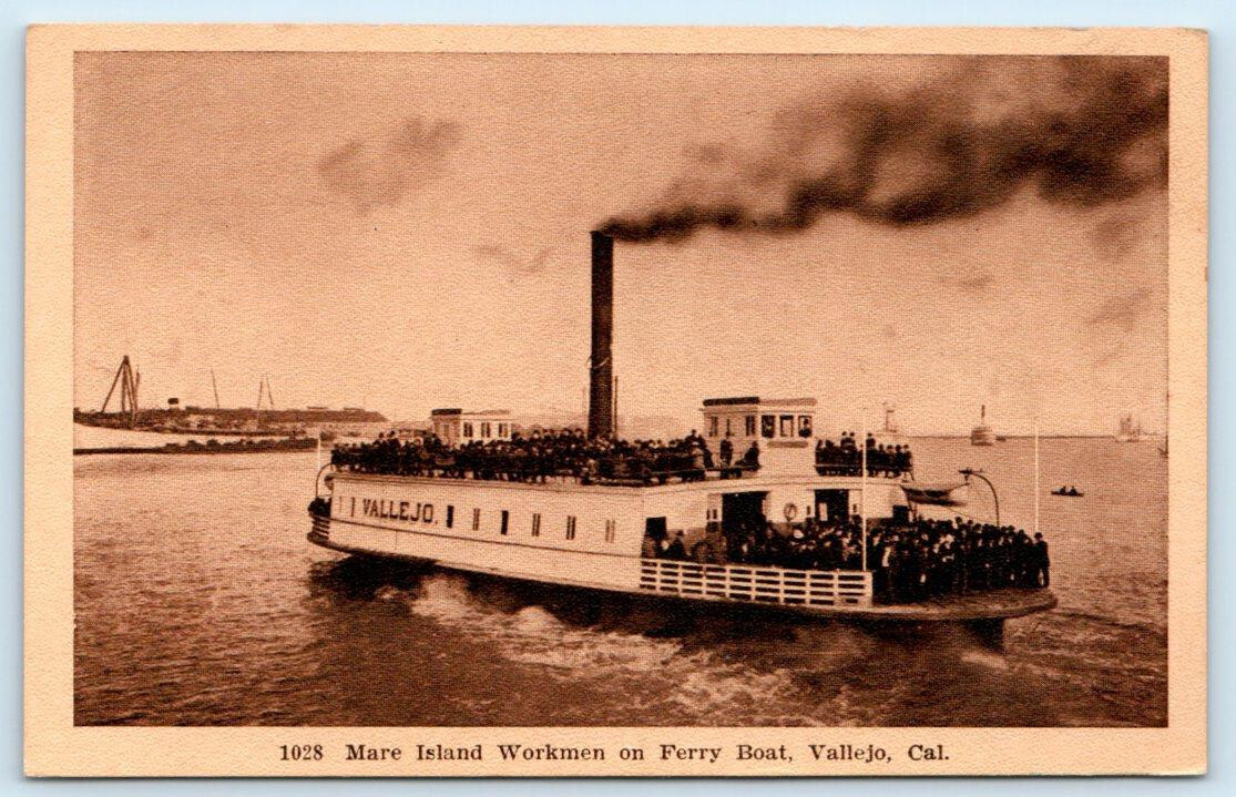 SOLANO COUNTY, CA California ~ MARE ISLAND WORKMEN on Ferryboat Vallejo Postcard