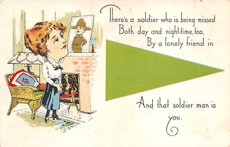 Soldier Pennant Postcard Unused, Grade: 3 - yellowing on card from age, , Size: Regular Size Postcard - approximately 3 1/2 inch x 5 1/2 inch (9 CM x 14 CM) Grading Scale: Grade 1 = Perfect corners Grade 2 = Ve ... Read More
