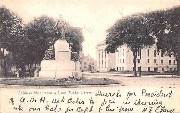 Soldiers Monument Lynn, Massachusetts Postcard - 1906