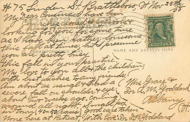 Description: Soldier's Monument, Brattleboro, VT real photo postcard. Postmarked 1908. Publisher: Unknown. Ships in a sturdy mailer. Please email for combined shipping discount.