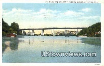 Soldiers' & Sailors' Memorial Bridge - Appleton, Wisconsin Postcard - 1931 Grade: 2 Size: R - Regular size: Approx 3 1/2 X 5 1/2 inch (9 cm X 14 cm) Grading Scale: Grade 1 = Perfect corners Grade 2 = Very Mini ... Read More