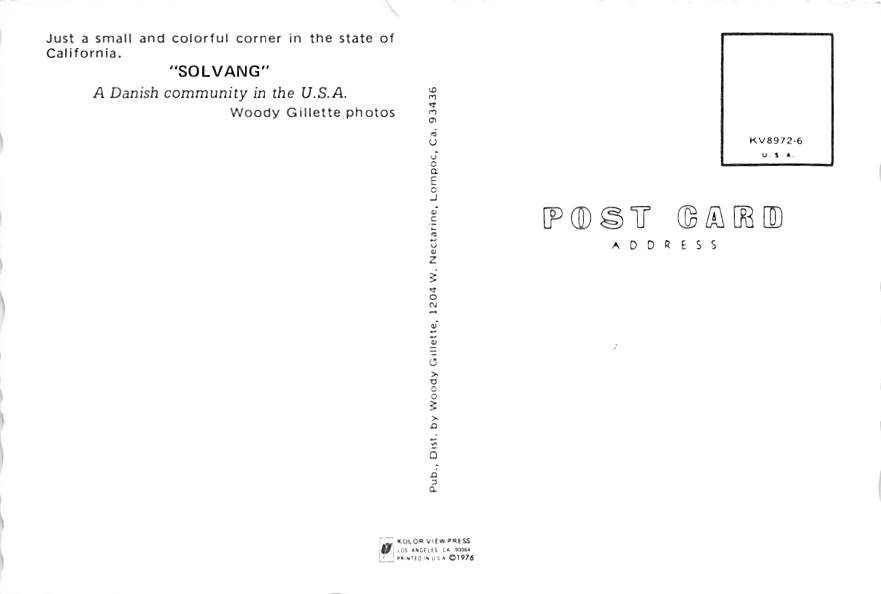 Solvang - California Grade: 1 Category: Continental Size Postcard, Approx 4 in x 6 in (10 cm x 15.25 cm) Product Size: Continental size: 4X6 inches (10.5 cm x 15 cm) Grading Scale: Grade 1 = Perfect corners Gra ... Read More