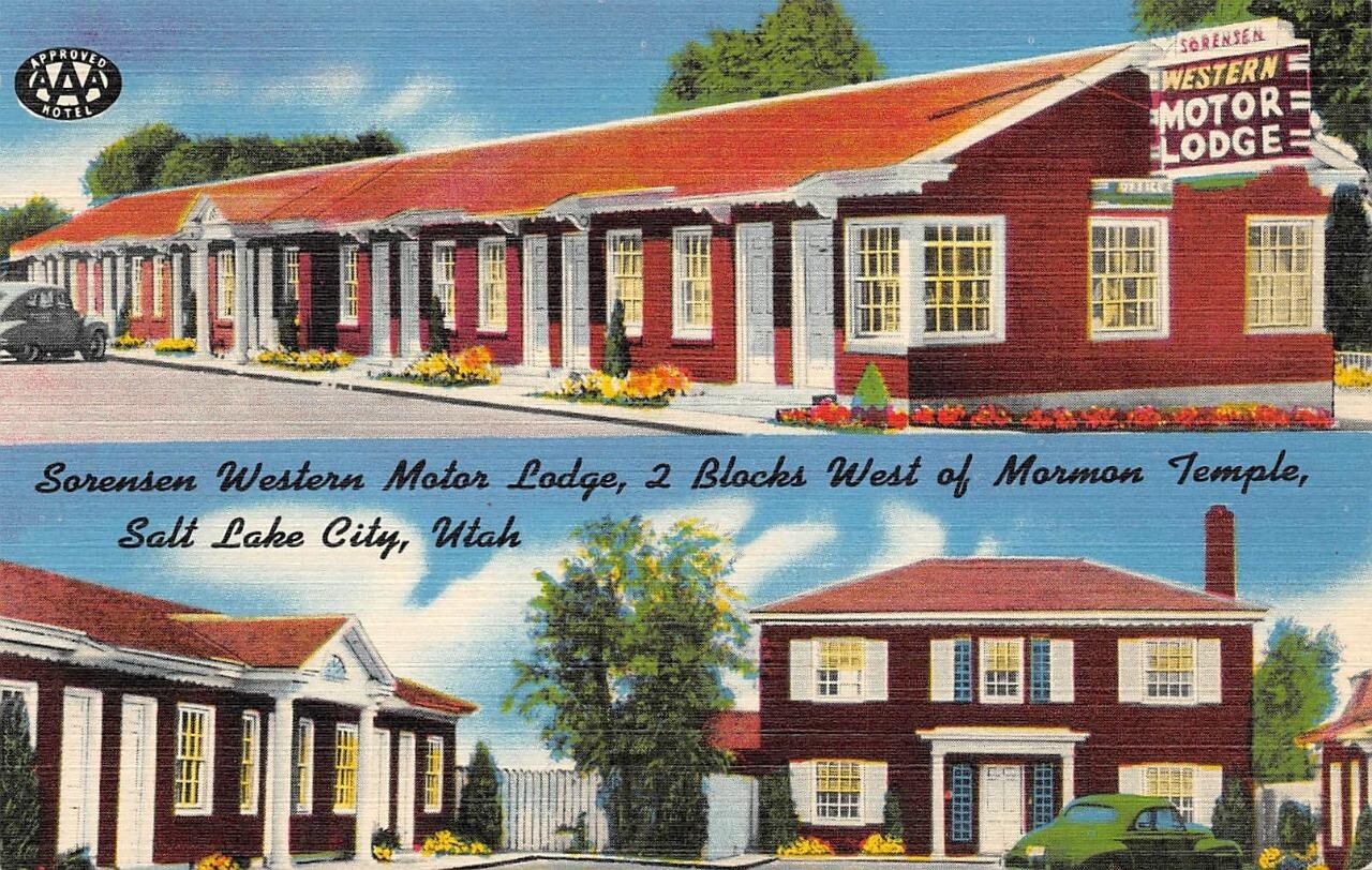 Sorensen Western Motor Lodge Salt Lake City, Utah Roadside '40s Vintage Postcard