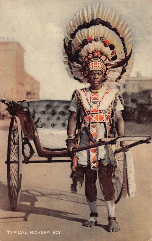 South Africa 1937 Typical Ricksha Boy Native Boy Rickshaw postcard B962