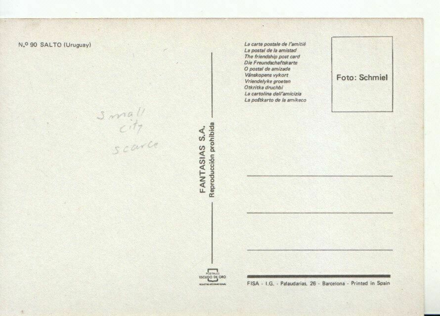 Mo's Postcards Postcard Description: South America Postcard - Uruguay - Salto Genealogy Information: Defects: Postage & Payment: For U.K residents the quoted P & P fee is for any number of postcards purchased at one time. Happy to quote for non UK residents. For multiple purchases please wait for an invoice Listing and template services provided by inkFrog
