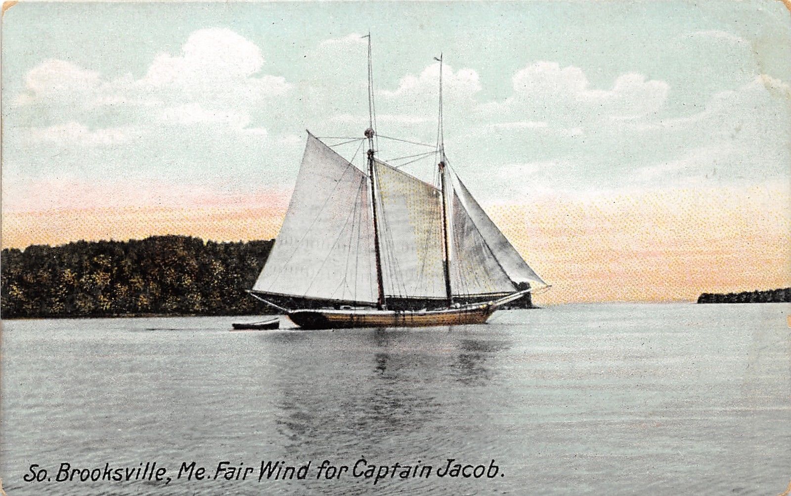 South Brooksville Maine~Fair Wind for "Captain Jacob" Schooner Ship~c1910 Pc