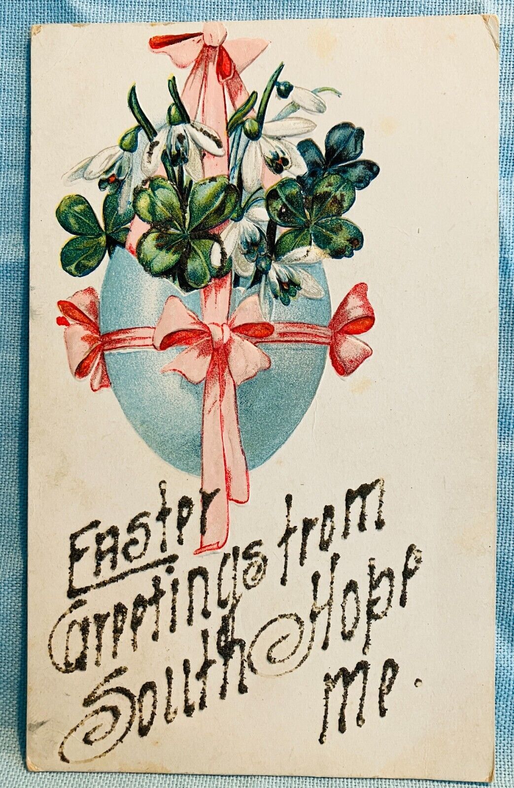 South Hope Maine Greetings From Easter Postcard- Sku: O-273A***Condition: see scans - Easter Greetings From in Glitter ... Tiny Corner wearPlease review images for condition. Vintage postcards often have corner bumps and edge wear.We also offer combined shipping if combined shipping invoice request is made prior to payment. Invoice will be sent upon request.