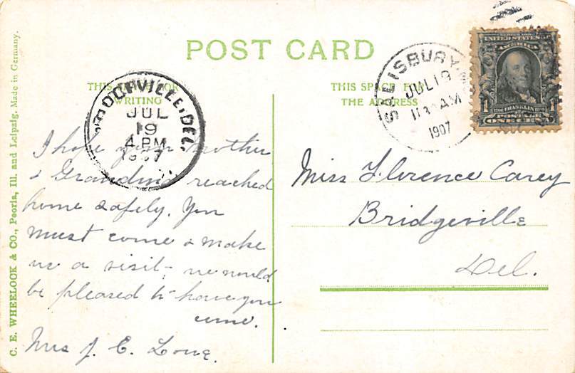 South Main St. Salisbury, Maryland MD Postcards - 1907
