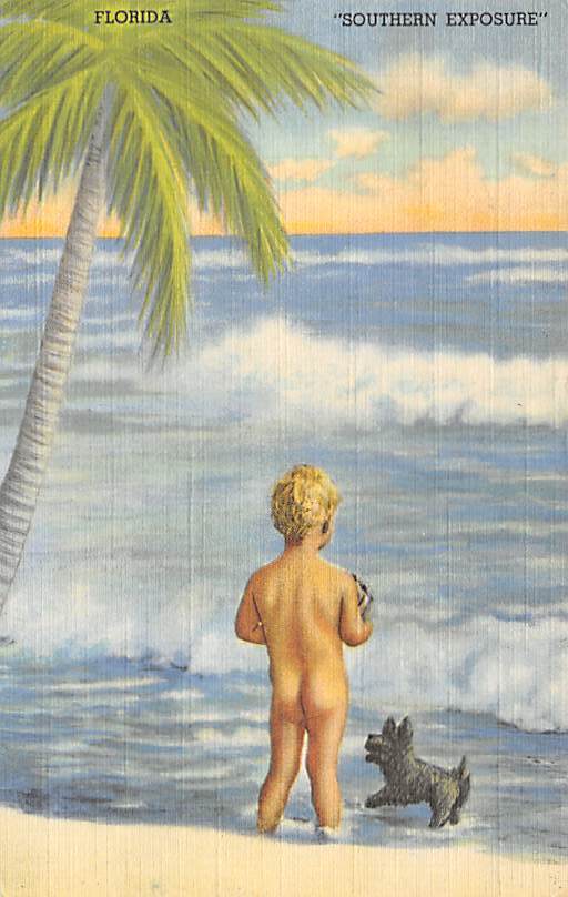 Southern Exposure Boy and Dog on Beach Misc FL Postcard - 1951