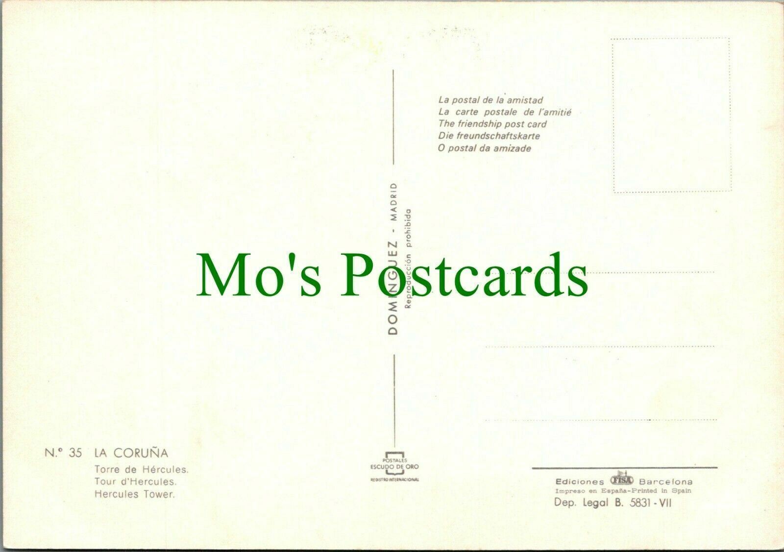 Mo's Postcards Postcard Description: Spain Postcard - La Coruna - Hercules Tower - Galicia Defect(s): Postage & Payment: For U.K residents the quoted P & P fee is for any number of postcards purchased at one time. H ... Read More