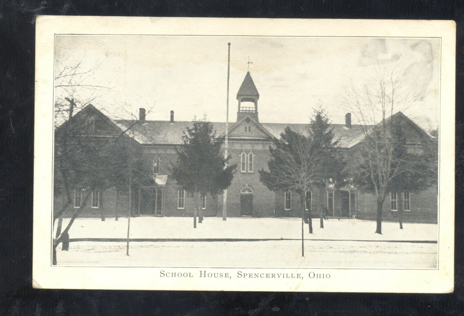SPENCERVILLE OHIO SCHOOL HOUSE BUILDING VINTAGE POSTCARD
